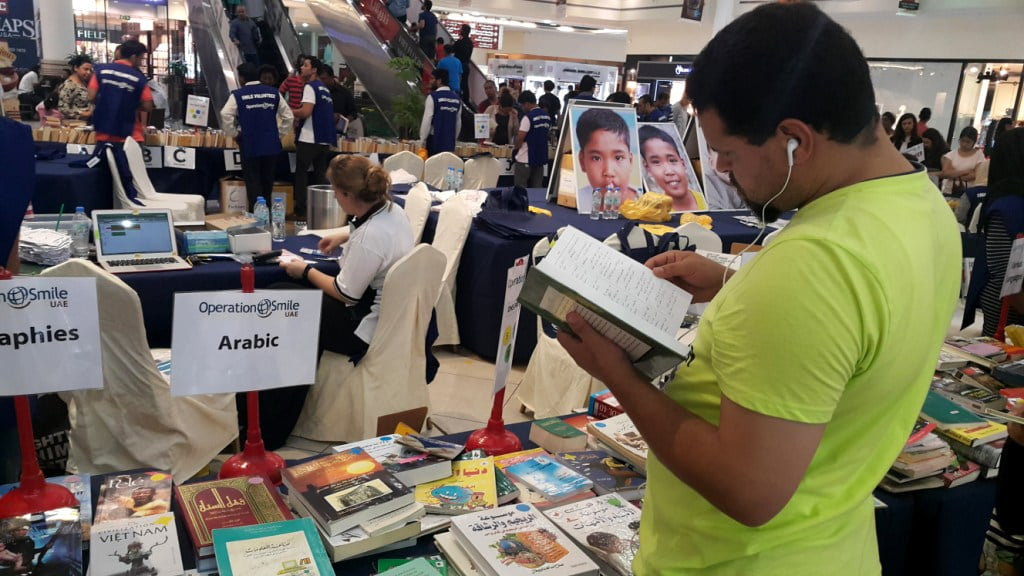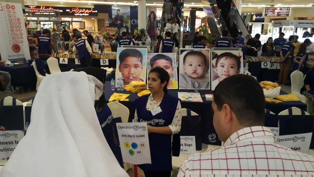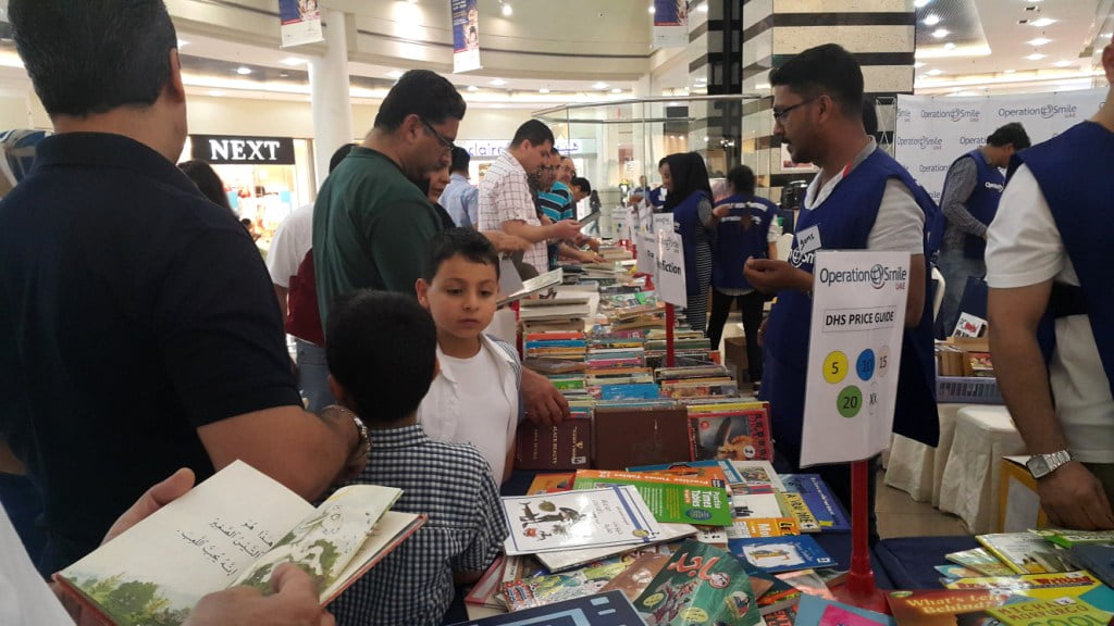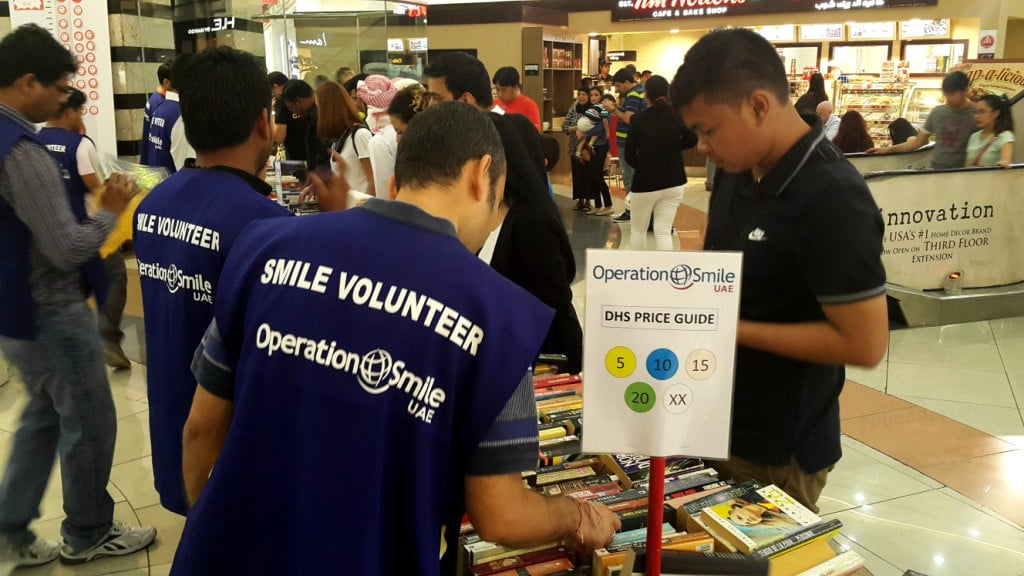 وتقوم مؤسسة الابتسامة – Operation Smile الدولية، من خلال فرعها في الإمارات بعرض مجموعة واسعة ومتنوعة من الكتب عند مدخل مجمع “الوحدة” التجاري بغية بيعها وبالتالي المساهمة في تمويل العمليات الطبية التي تتخصص بها تلك المؤسسة لإصلاح مشكلة الشق في الشفة أو سقف الحنك أو تشوهات أخرى في الوجه يولد بها الأطفال، من دون أعباء مادية على الأهل.